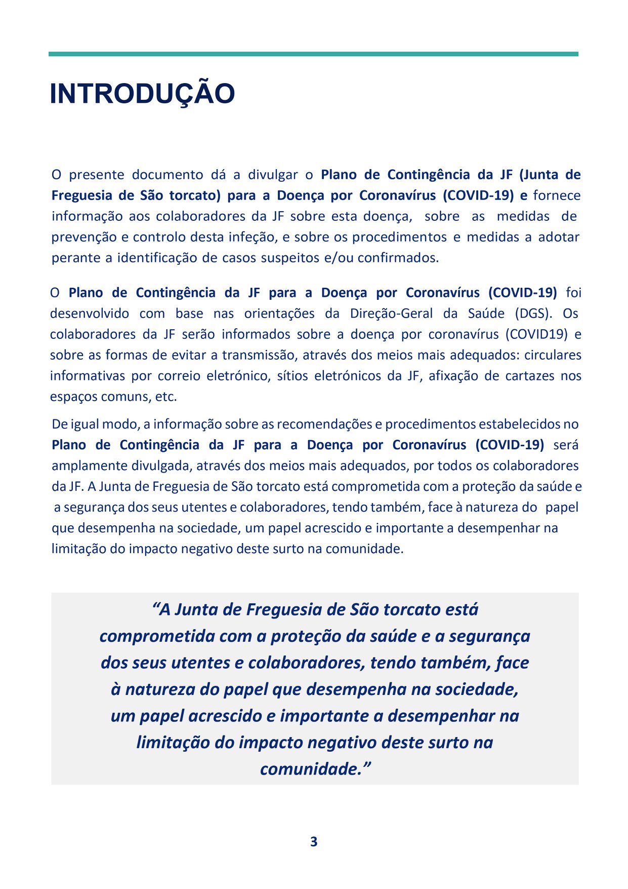 - Manter a população informada pelas vias anteriormente mencionadas, sobre a Doença por Coronavírus (COVID-19) e acompanhar de perto na Vila de São Torcato o desenrolar da situação em articulação com as autoridades competentes;